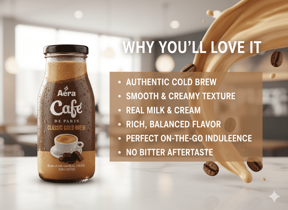 With modern packaging and ready-to-drink convenience, classic cold coffee has found its place in today’s lifestyle — and Aera Café is proud to be part of that journey.